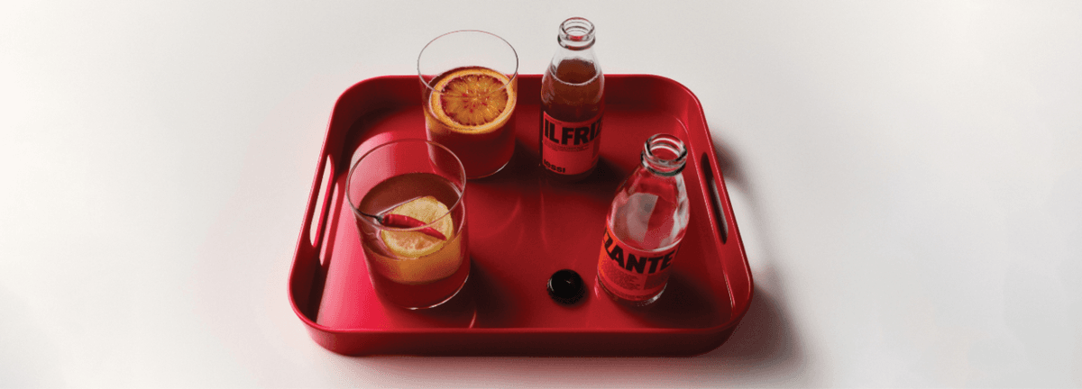 Eau gazéifiée, sucre, jus de cerise concentré, jus de gingembre, arômes naturels, extraits naturels (orange amère, orange douce, absinthe, réglisse, cannelle, rhubarbe), acidifiant : acide citrique, sel, conservateurs : sorbate de potassium et benzoate de sodium, arôme naturel de piment, arôme : quinine.