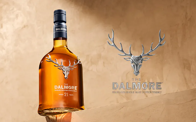 Une tête de cerf, armoirie du clan Mackenzie, orne les Single Malts The Dalmore. Elle fait référence à la légende selon laquelle le chef du clan sauva le roi d’Ecosse Alexandre III, qui faillit être encorné lors d’une partie de chasse. La tradition et l’audace se lisent encore à travers la volonté de la distillerie de créer des Single Malts légendaires.
